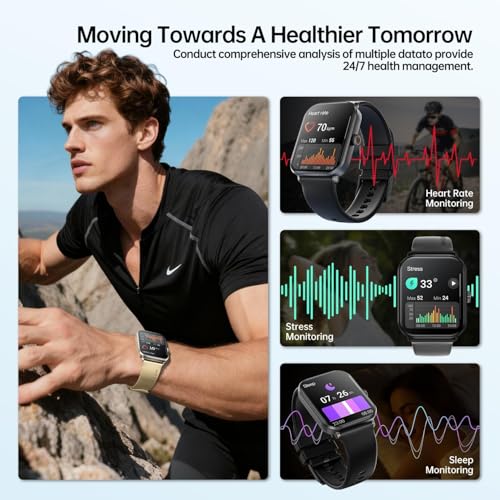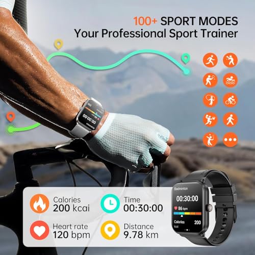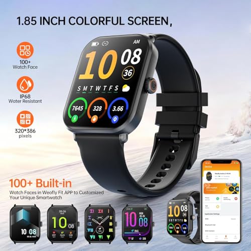 Weofly - ويوفلاي ساعة ذكية اكتيف 2 للرجال والنساء، شاشة HD 1.85 انش، تتبع اللياقة البدنية ومعدل ضربات القلب، مقاومة للماء IP68، اكثر من 100 وضع رياضي، متوافقة مع اندرويد واي او اس، اسود