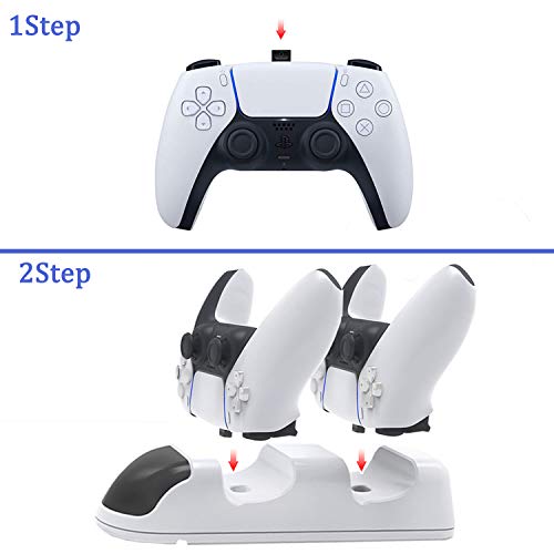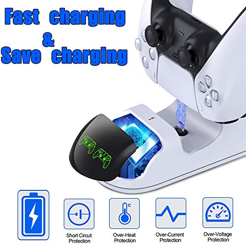 WEPIGEEK - وحدة شاحن ذراع تحكم بلاي ستيشن 5 دوبي من وايبيجيك منصة شحن سريعة مزدوجة ذات USB نوع c ومؤشر LED حماية قبل شريحة الامان مخصصة لجهاز دوال سينس سوني ابيض