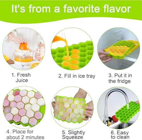 weqty - قوالب مكعبات ثلج صغيرة من ويكتي، قوالب مرنة من السيليكون على شكل خلية نحل من 37 قسم لصنع الثلج والحلوى والشوكولاتة والايس كريم والمشروبات الباردة للحفلات والكوكتيلات للثلاجة