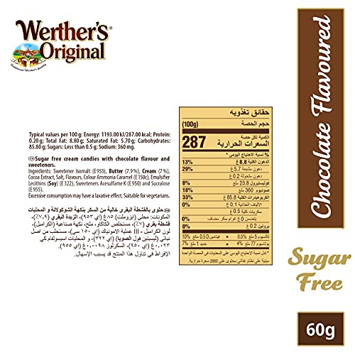 Werther's Original - حلوى الشوكولاته الأصلية الخالية من السكر من ويرذرر، 60 غم