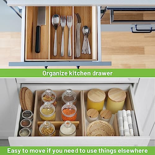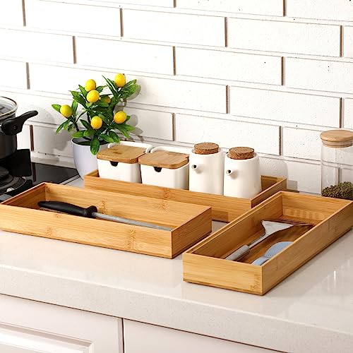 - يمكنك الحصول على: سوف تحصل على 4 قطع من منظمات أدراج المطبخ المصنوعة من الخيزران، بمظهر بسيط يمكن أن يتكيف مع أنماط مختلفة من المطابخ؛ كمية كافية لتلبية احتياجات التخزين المختلفة الخاصة بك