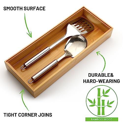 Wesiti - ويسيتي مجموعة من 4 صناديق تنظيم للادراج المصنوعة من الخيزران 14.96 × 5.98 × 1.97 انش، منظم ادوات مائدة متعدد الاستخدامات للادراج وادوات المائدة وتخزين ادوات المطبخ والحمام وغرفة المعيشة