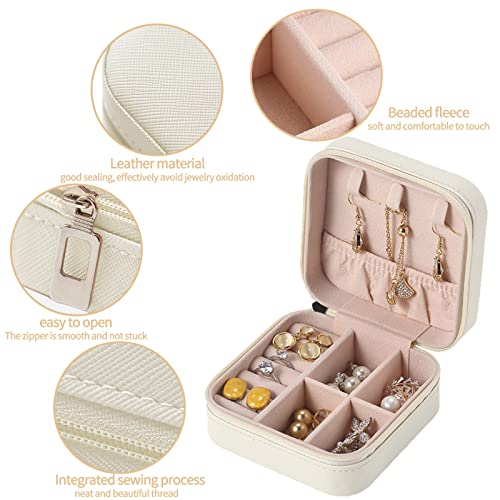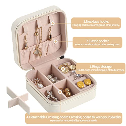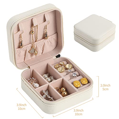 Wesoke - صندوق تنظيم مجوهرات صغير من الجلد الصناعي للنساء للخواتم والسلاسل والحلقان والأساور والساعات لعرض المجوهرات وحفظها أثناء السفر من ويسوكي، لون أبيض