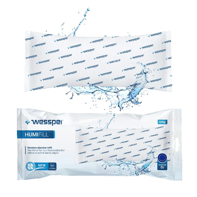 Wessper - عبوة اعادة تعبئة ممتص الرطوبة من ويسبر، 500 غرام، ابيض، مزيل الرطوبة لمدة 3 اشهر، عبوة واحدة