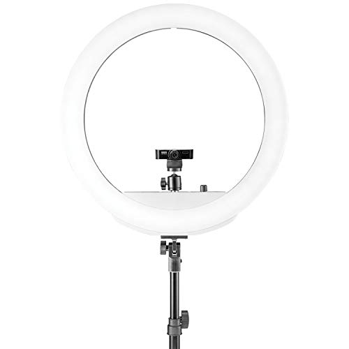 • مجموعة كاملة: تتضمن حلقة إضاءة LED ثنائية اللون مقاس 18 بوصة مع بطاريات، وحامل للهاتف المحمول، وذراع عنق الإوزة، وحامل كاميرا بالحجم الكامل، وحامل 6.5 بوصة، وكاميرا ويب بدقة 1080P HD PTZ 80 للحصول على جودة صورة جميلة