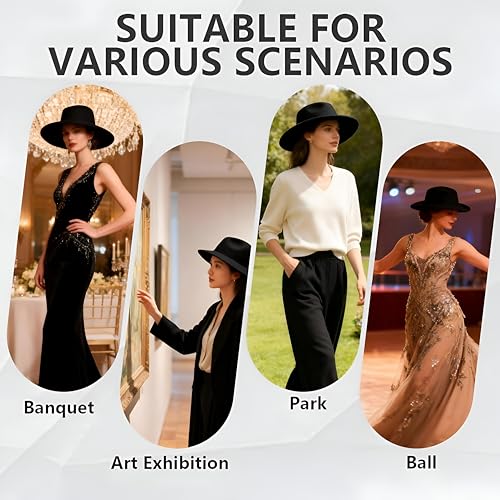Generic - ويسترن فيدورا - قبعة صوف سوداء فاخرة مع حافة منحنية للارتداء للجنسين، تقدم مجموعة متنوعة من ربطات الرأس الأنيقة وجاذبية جمالية أصلية لراعي البقر