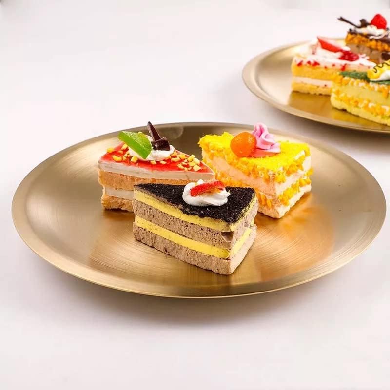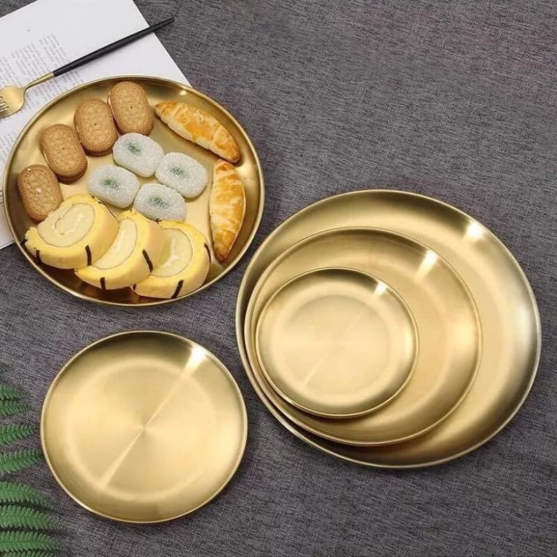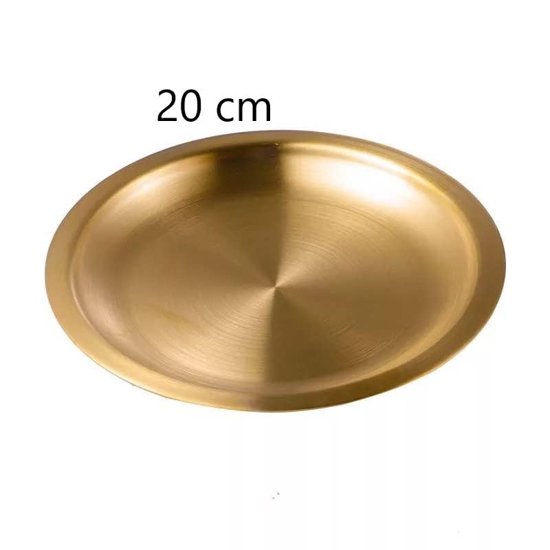 Generic - طبق طعام دائري ستانلس ستيل بتصميم غربي صديق للبيئة من ادوات المائدة، صينية ذهبية دائرية 20 سم متعدد الألوان