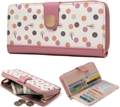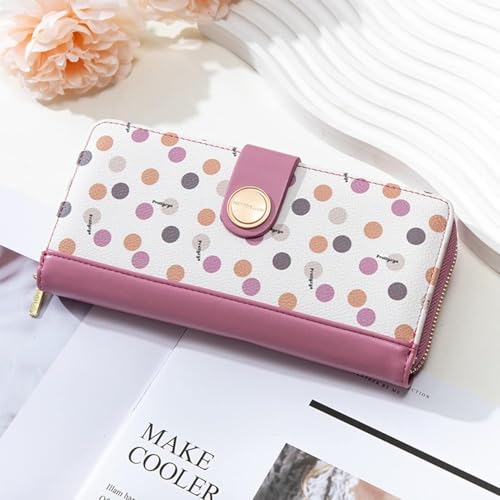 Generic - محفظة نسائية طويلة من جلد البولي يوريثين بتصميم غربي، محفظة بمشبك لحمل العملات المعدنية والبطاقات (بني)