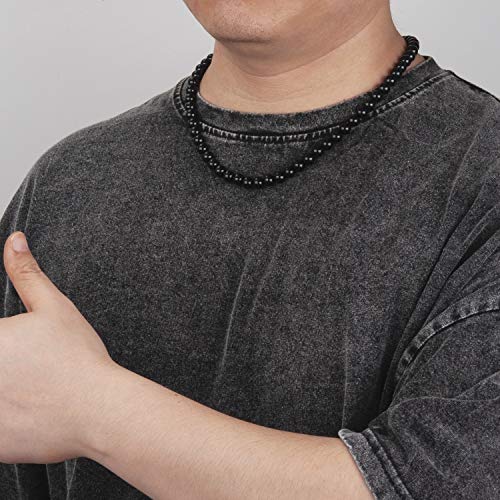 WESTMIAJW - سلسلة خرز للرجال من العقيق اليماني الاسود الاحجار الكريمة الطبيعية مجوهرات كريستال علاجية 50 - 60 سم اونيكس