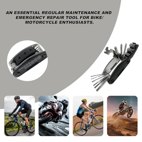 - 【تصميم 16 في 1】: منتجنا هو أداة متعددة للدراجات والدراجات النارية التي تعتمد على تصميم 16 في 1. تتضمن مفاتيح ربط 8/9/10 ملم، 1 مفك براغي مشقوق، 1 مفك براغي متقاطع، 2/ 2.5/ 3/ 4/ 5/ 6 ملم، 1 قضيب تمديد على شكل حرف T، و8/ 10/ 14 ملم، مفتاح ربط مسطح 14GE.