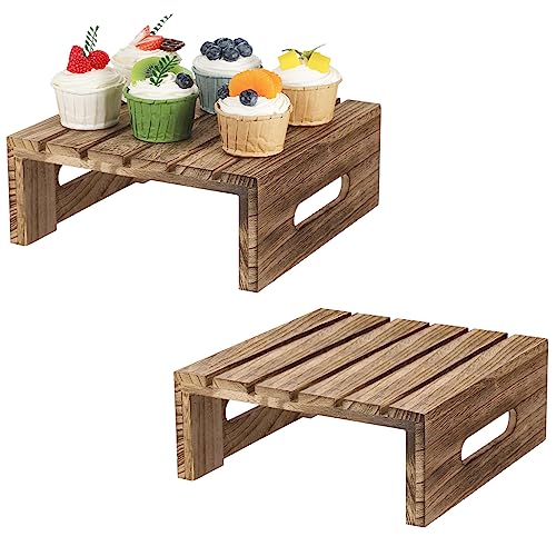 Weysat - حامل خشبي لعرض الكب كيك، حامل كيك بنمط ريفي، حامل كيك مقبلات للحلوى، حامل كيك للاطعمة والحلويات، حامل لحفلات الزفاف وأعياد الميلاد وحفلات التخرج، منظم للعطور، مجموعة من قطعتين من ويسات