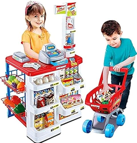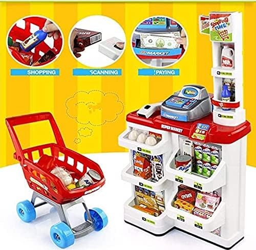 WF - مجموعة ألعاب سوبر ماركت منزلية مكونة من 48 قطعة من دبليو اف للعب التظاهري بقطع السوبر ماركت والمطبخ للبنات والأولاد (متعددة الألوان)