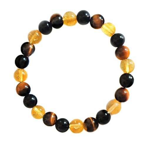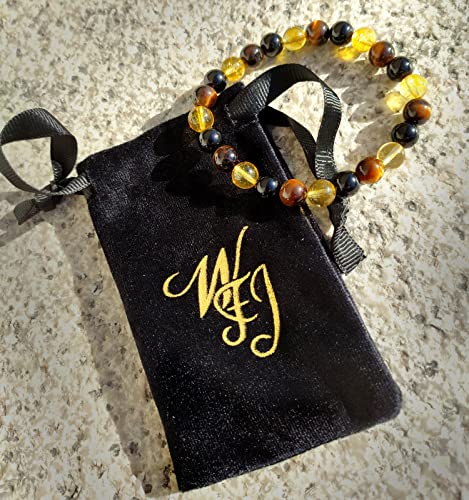 WFJ - دبليو اف جيه سوار حماية ثلاثية من السترين وعين النمر الاصفر والعقيق اليماني للرجال والنساء (8 ملم) 19 سم