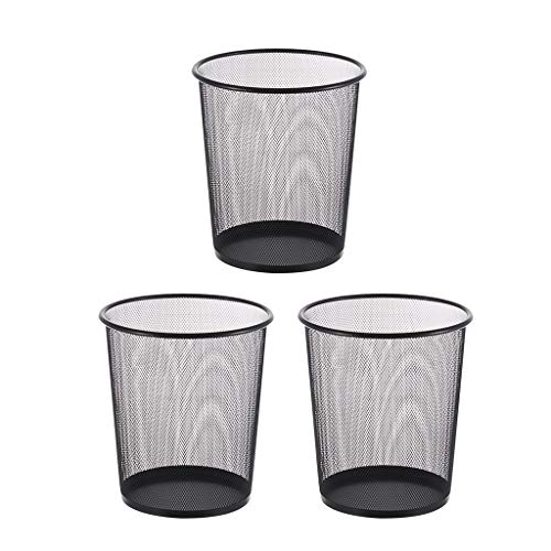 WFS - سلة مهملات للمطبخ من دبليو اف اس، سلة مهملات دائرية معدنية صغيرة للمساحات الضيقة في المنزل أو المكتب (اللون: أسود 3)