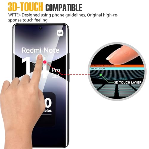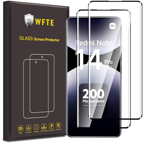 WFTE - عبوة من طبقتي حماية للشاشة من الزجاج المقوى لموبايل شاومي ريدمي نوت 14 برو شبكة الجيل الخامس 5G/بوكو X7، شاشة حماية ثلاثية الأبعاد بتغطية كاملة مع زجاج بدرجة صلابة 9 من دبليو اف تي اي (أسود)
