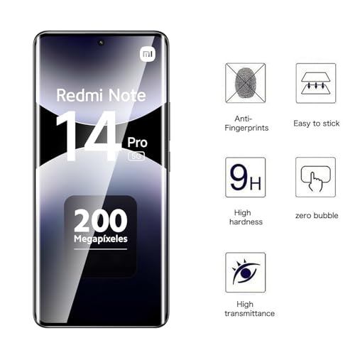- تصميم سهل التركيب: تركيب سريع وسهل بفضل مجموعة التنظيف المتضمنة. تركيبها سهل وسريع ضع الشاشة الواقية بسهولة ودقة على شاشة جهازك بدون فقاعات مع الإطار الموجود حول موبايل شاومي ريدمي نوت 14 برو شبكة الجيل الخامس 5G. بدون فقاعات أو صعوبة.