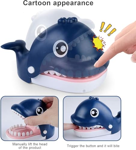 Generic - لعبة بشكل فم الحوت (أزرق) بتصميم عالي الجودة، لعبة حوت تفاعلية للأطفال لتحدي ضغط الأسنان مع آلية تعليق ممتعة،