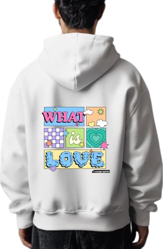 Generic - سويت شيرت بغطاء للرأس مطبوع عليه عبارة WHAT is LOVE أبيض