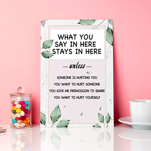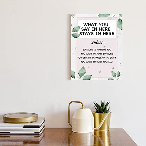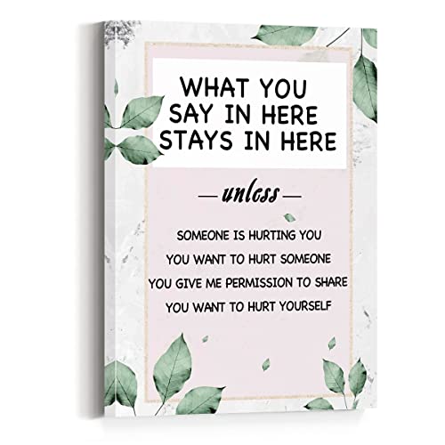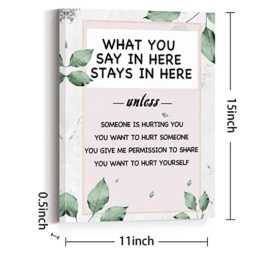 JANLAN - لوحة فنية جدارية قماشية مؤطرة بعبارة What You Say In Here Stays In للصحة العقلية جاهزة للتعليق للمعالج-الأخصائي الاجتماعي-ديكور مكتب الاستشارة 12 × 15 انش