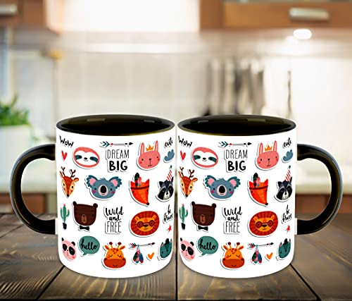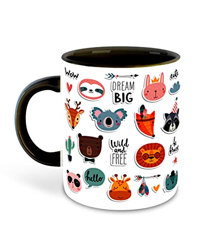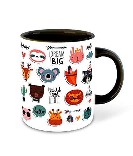 WHATS YOUR KICK - مج قهوة وشاي سيراميك من واتس يور كيك® مطبوع عليه رسومات كرتونية لطيفة مناسب كهدية للأطفال في عيد الميلاد | أفضل هدية | هوبي (متعدد الألوان 3)