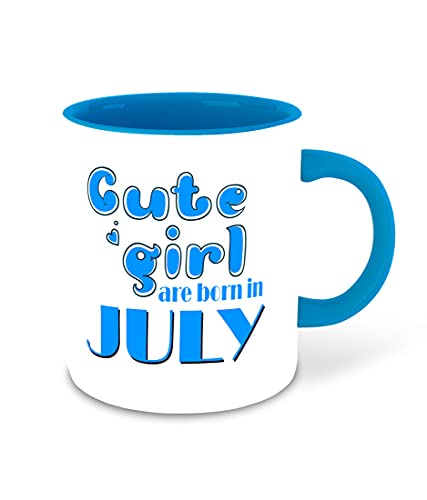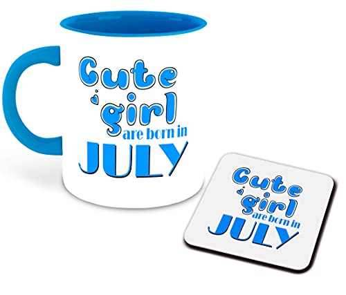 WHATS YOUR KICK - مج قهوة سيراميك للمشروبات واللبن بطباعة "Cute Girls are Born in July" ولون وردي من الداخل مع قاعدة أكواب لأعياد ميلاد البنات من واتس يور كيك (تصميم رقم 1)