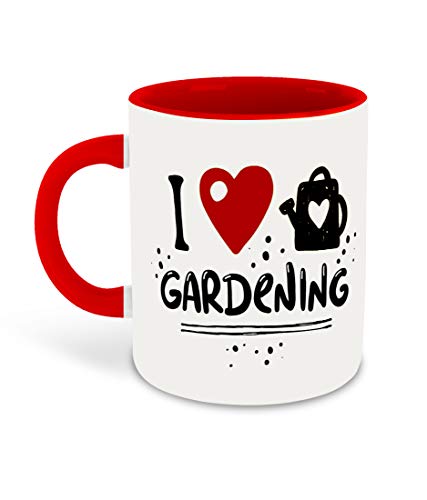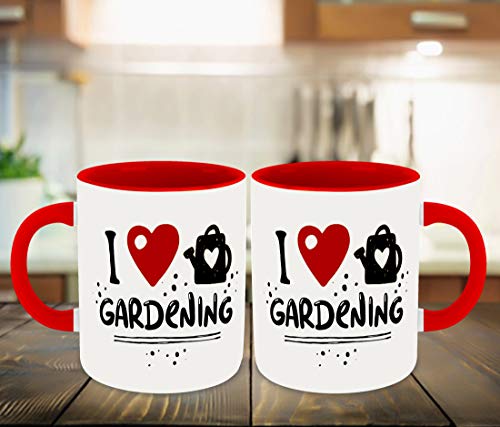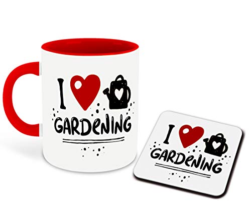 WHATS YOUR KICK - مج قهوة سيراميك مزين بعبارات عن البستنة والزراعة والأزهار والأعشاب والطبيعة بتصميم بجزء داخلي بلون أحمر مع قاعدة أكواب من واتس يور كيك، (متعدد 8)