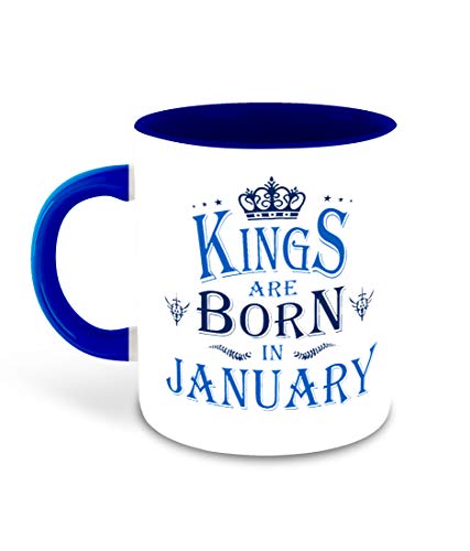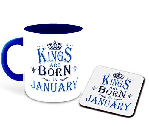 WHATS YOUR KICK - مج قهوة سيراميك بلون أزرق داكن من الداخل مزين بطباعة عبارة "Kings are Born in June" مع قاعدة أكواب من واتس يور كيك، مج للمشروبات، هدية تمني لعيد ميلاد سعيد (متعدد 1)