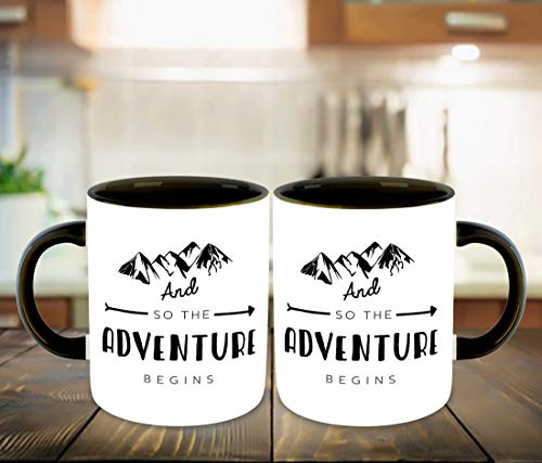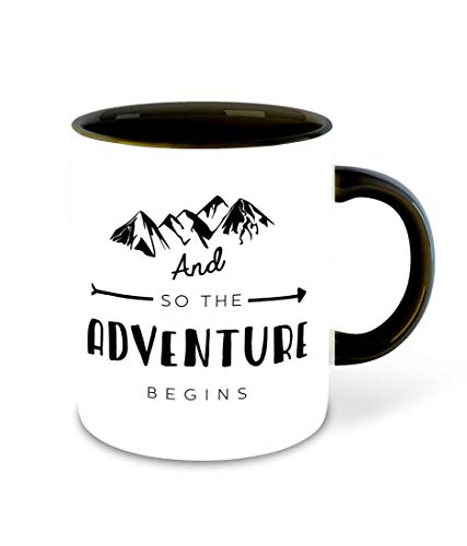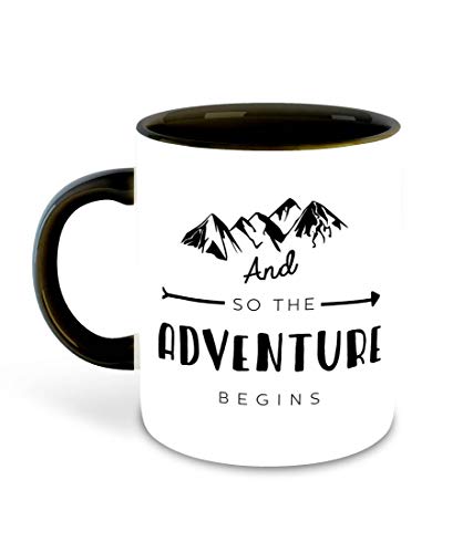 WHATS YOUR KICK - مج سيراميك للقهوة بطبعة عبارات مستوحاة من السفر، مج قهوة بتصميم جزء داخلي بلون أسود للسفر واستكشاف الطبيعة من واتس يور كيك (ألوان متعددة - 6)