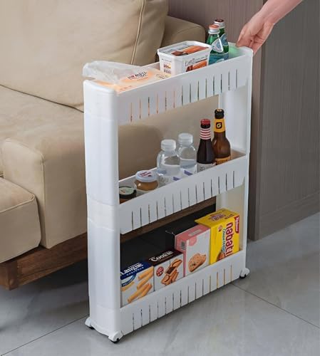 Generic - عربة متعددة الاستخدامات بعجلات - مثالية لتعزيز التنظيم، هذا الرف متعدد الطبقات الموفر للمساحة مثالي للمطابخ والحمامات، مما يضمن سهولة الوصول إلى ضرورياتك (3 دور)