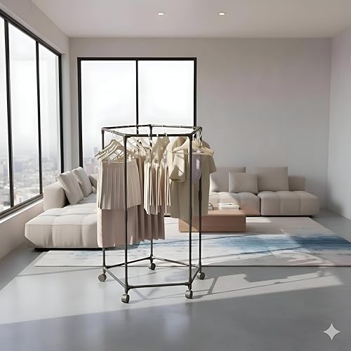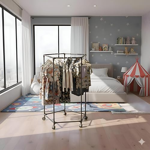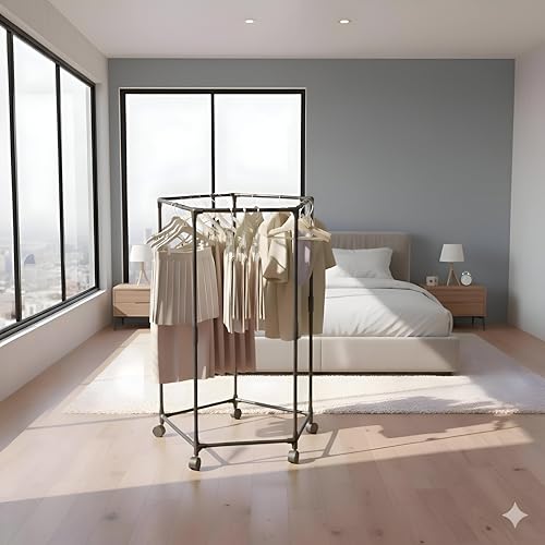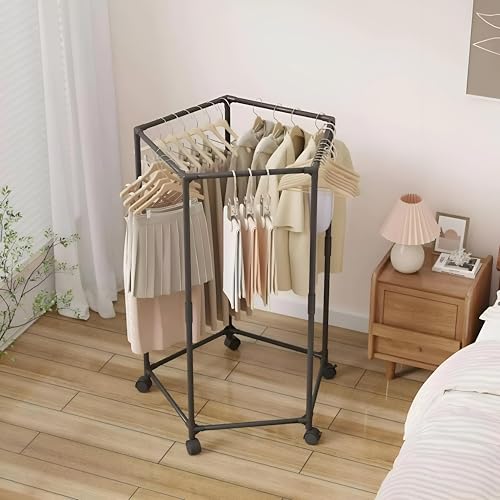 Generic - حامل خزانة بعجلات - حامل خزانة محمول سداسي الشكل بخمس عجلات مع فرامل، تصميم معدني سداسي قوي وشامل يوفر مساحة لتنظيم غرفة النوم، سهل التركيب