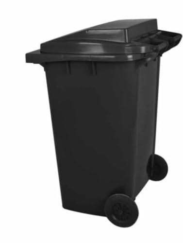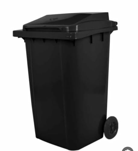 Generic - سلة مهملات بغطاء من ويلي، لون اسود، سعة 240 لتر، حاوية نفايات خارجية