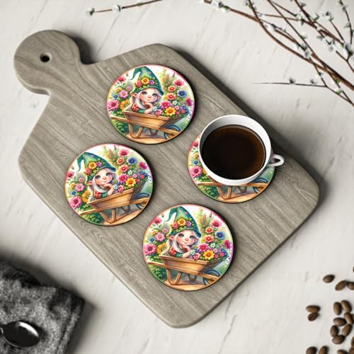 Generic - قواعد أكواب بتصميم زهرة الجنية في عربة يدوية - قاعدة أكواب دائرية لديكور المنزل أو المكتب، مجموعة قواعد أكواب مطاطية مقاومة للحرارة ومتينة - مجموعة من 4 قطع