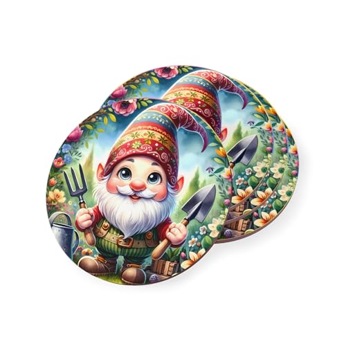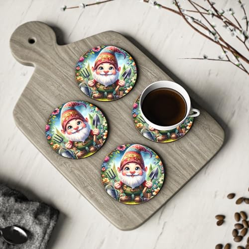 Generic - مجموعة قواعد اكواب مطاطية دائرية مقاومة للحرارة ومتينة من ويمزيكال جنوم مع قبعة وادوات بتصميم زهور لديكور المنزل او المكتب، مجموعة من 4 قطع