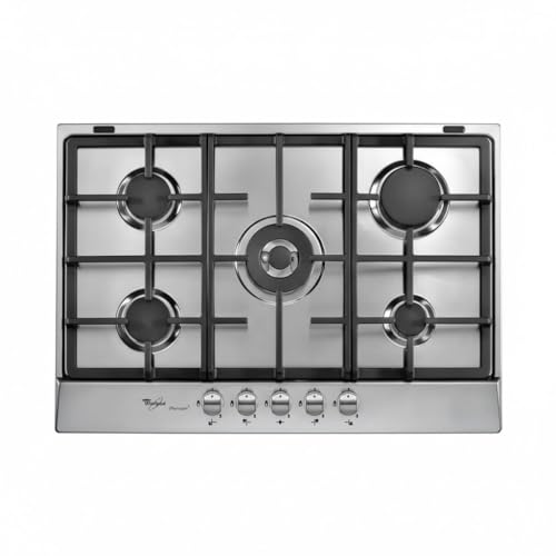 Whirlpool - موقد غاز مدمج بريميوم 75 سم، 5 شعلات، من الفولاذ المقاوم للصدأ، شبكات من الحديد المصبوب، إشعال تلقائي، طلاء ايكسيليوم، من ويرلبول، موديل AKR 348/IXL