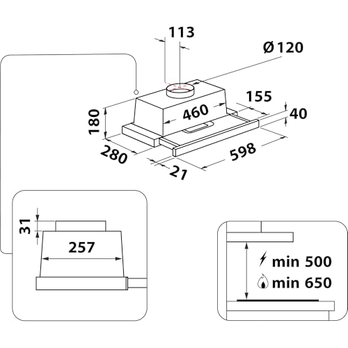Whirlpool - شفاط مطبخ تلسكوبي، من الفولاذ المقاوم للصدأ، قدرة شفط 304 متر مكعب في الساعة، 3 إعدادات سرعة، تصميم عصري للمطبخ، طراز AKR 749/1 IX من ويرلبول، 60 سم