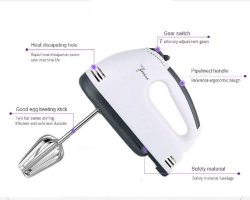 Generic - مضرب خفق يدوي عالي الأداء يوفر 7 سرعات، ملحقات خلط العجين بتصميم خفيف الوزن لراحة معززة لمهام مطبخ مطبخ