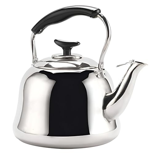 Generic - غلاية شاي جاهزة للصفارة - غلاية من الستانلس ستيل مع صافرة كريستالية، قبضة مريحة، غطاء محكم الغلق وقاعدة مطلية بالالومنيوم تضمن توزيعًا متساويًا للحرارة لتخمير الشاي بسرعة 1.5 لتر
