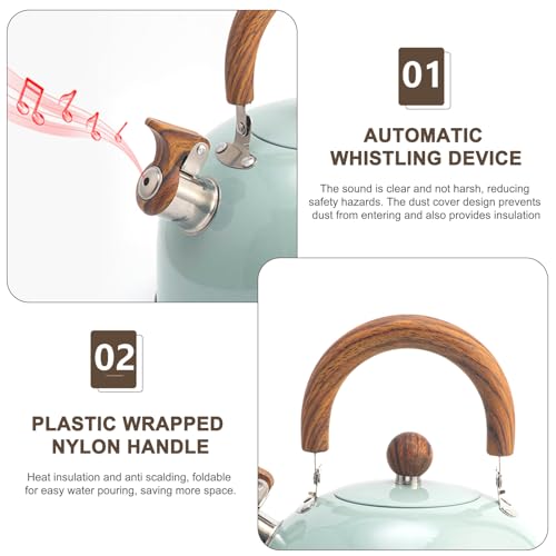 - صوت غليان الماء، يقلل من مخاطر السلامة: عندما يصل الماء إلى نقطة الغليان، ستصدر غلاية الصفير الخاصة بنا صوتًا واضحًا وممتعًا، والذي لا يقضي فقط على مخاطر الحوادث، ولكن أيضًا يصدر تنبيهًا لإعلامك عندما يكون الماء جاهزًا. يضمن تصميم غطاء الغبار النظافة ويساعد على الحفاظ على الدفء