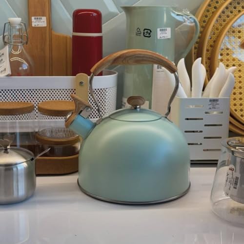 Generic - غلاية شاي بصفارة ومقبض خشبي من الفولاذ المقاوم للصدأ، يمكن وضعها على البوتاجاز، 3 ألوان
