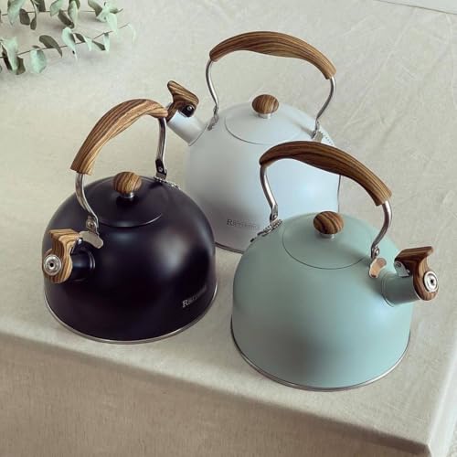 - تصميم فاخر: غلاية الشاي الصافرة ريتبرج مصنّعة من فولاذ مقاوم للصدأ عالي الجودة مع لمسات مقبض بـ نقشة خشبية أنيقة ومتوفرة بثلاثة ألوان عصرية.