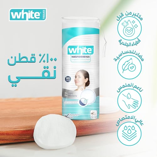 White - وسادات قطنية عضوية بيضاء (مزيل المكياج