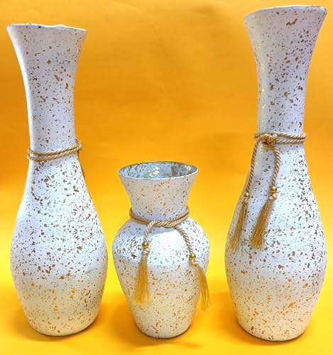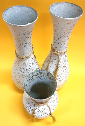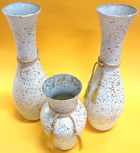 Generic - طقم فازات ابيض ودهبي vases زجاج ديكوري عدد ثلاث قطع مزخرفة HANDMADE وحبل مجدول لون ذهبي