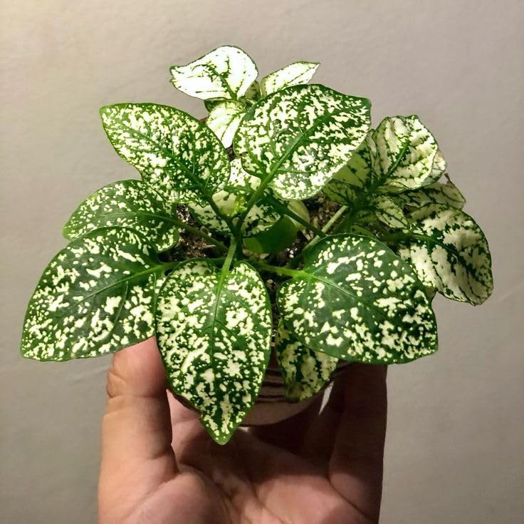 - النبات: هيبوستس مميز بأوراق خضراء وبيضاء منقطة بنمط فريد، مثالي كنبات زينة داخلي