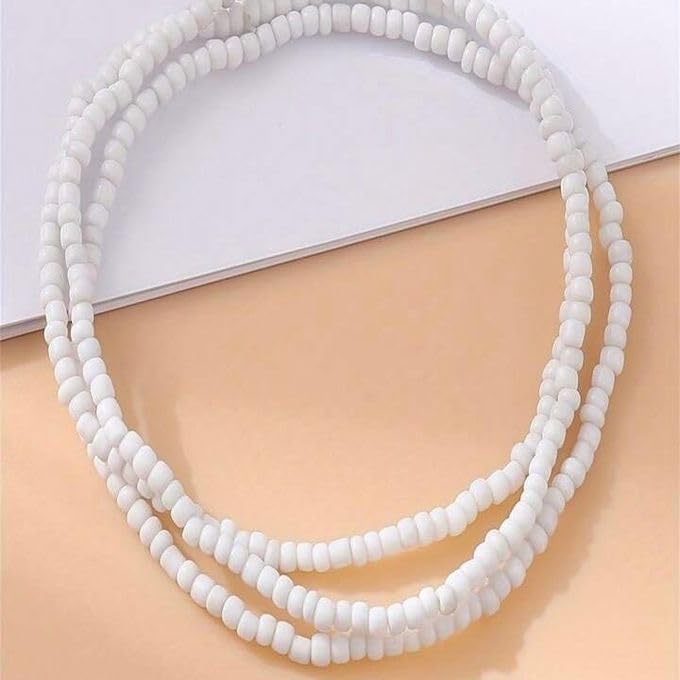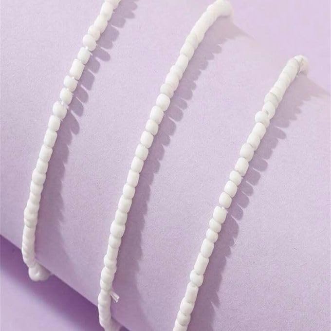 Generic - اساور كاحل مطرزة باللون الابيض للنساء، مجموعة من 3 قطع، تصميم متعدد الطبقات