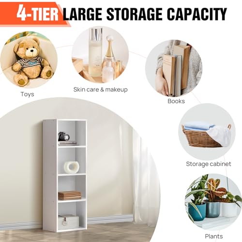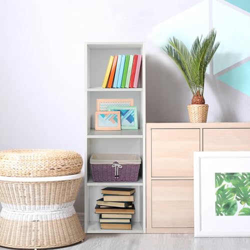 Xinng - دولاب كتب بيضاء من 4 طبقات مكعبة، خزانة كتب مفتوحة من 4 طبقات، رف كتب صغير الحجم، وحدة تنظيم خزانة تخزين حديثة لغرفة المعيشة وغرفة النوم والمكتب.