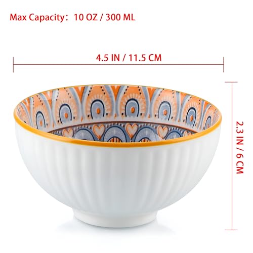 - بقطر مثالي 11.5 سم وارتفاع 6 سم، كل وعاء بسعة 300 مل بحجم مدروس لتقديم مجموعة متنوعة من الأطعمة - من الأرز والنودلز إلى الحساء والسلطات والفواكه والحلويات والتغميس - مما يجعلها مثالية لكل من الوجبات اليومية والعرض الأنيق في التجمعات أو المناسبات الاحتفالية.