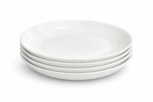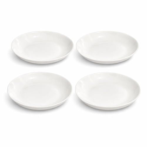 Generic - مجموعة اطباق مكرونة سيراميك بيضاء من 4 قطع - اوعية عشاء مسطحة 20 سم/ 8 انش، عمق 4 سم - اطباق تقديم عريضة للمعكرونة والسلطة والشوربة والاطباق الرئيسية - تصميم عصري بسيط