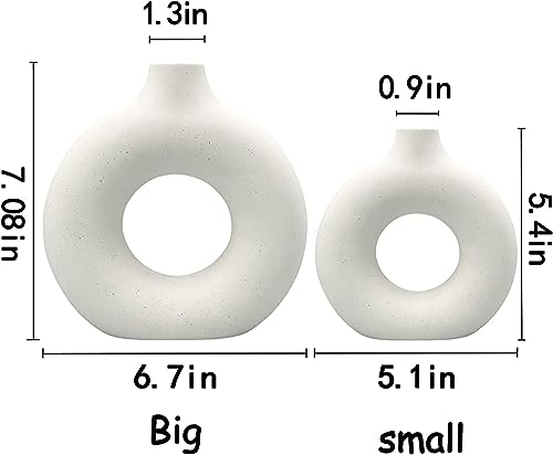Generic - مزهريات سيراميك بيضاء - قطعتان لديكور المنزل العصري، مزهرية بوهو دائرية غير لامعة للديكور، مزهريات سيراميك بنمط نورديك بسيط لطاولة الزفاف وغرفة المعيشة والمكتب