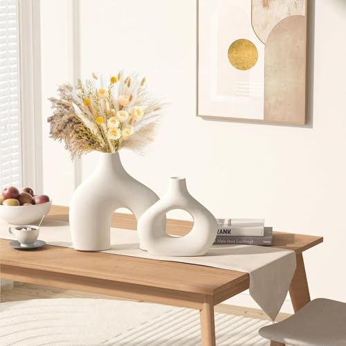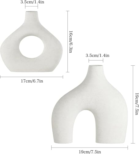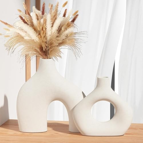 Generic - مجموعة مزهريات سيراميك بيضاء، مزهريات عشب البامباس لديكور المنزل، مزهريات بوهو دائرية غير لامعة للزهور، مزهرية بنمط نورديك بسيط لغرفة المعيشة وغرفة النوم وديكور الرف