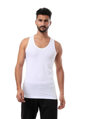 White chemise - قميص داخلي قطن بقصة مريحة للرجال بلون ابيض، مقاس M